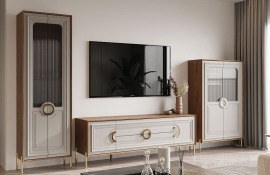 Гостиная Шейх слоновая кость: две витрины 1-дв. и тумба ТВ Мэри мебель