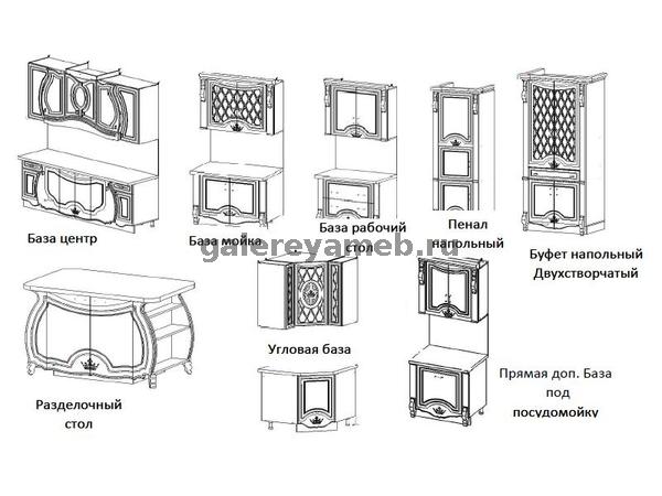 Шкафы нижние и верхние с фасадами,карниз для верхних шкафов.