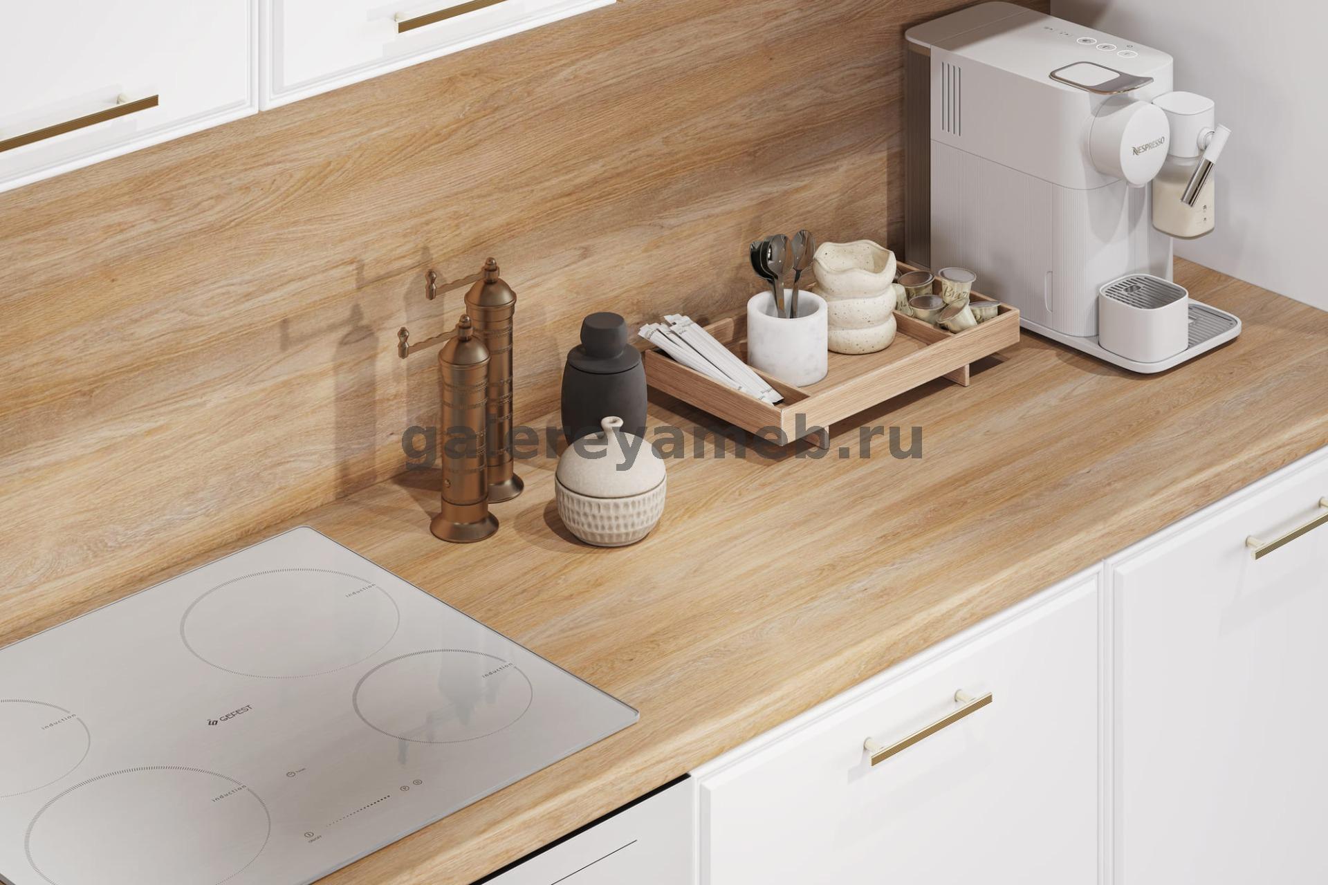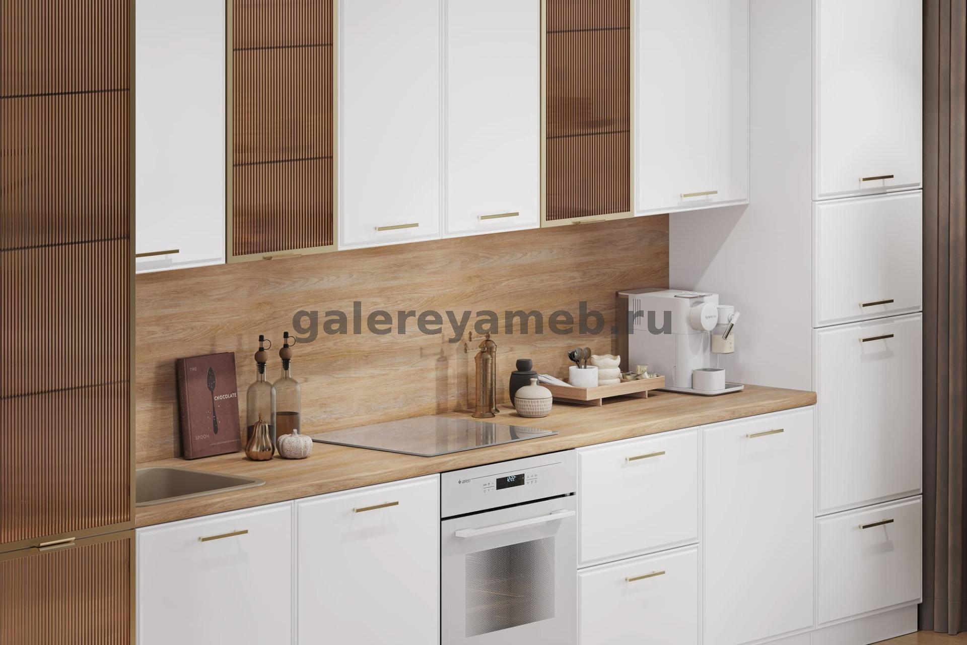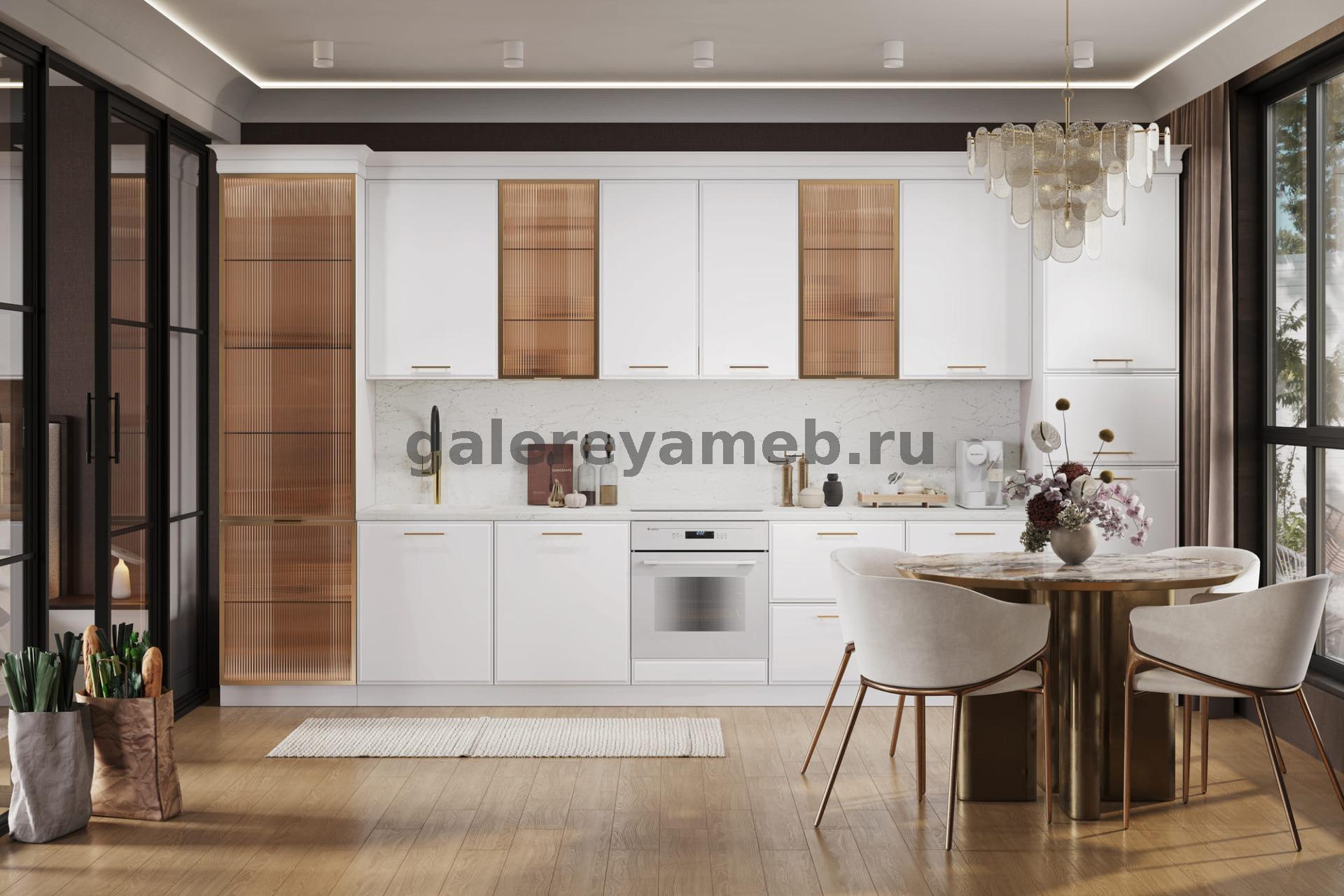 Кухня Виктория прямая 4,20 м Белый, Золото, Дуб Французский Арида