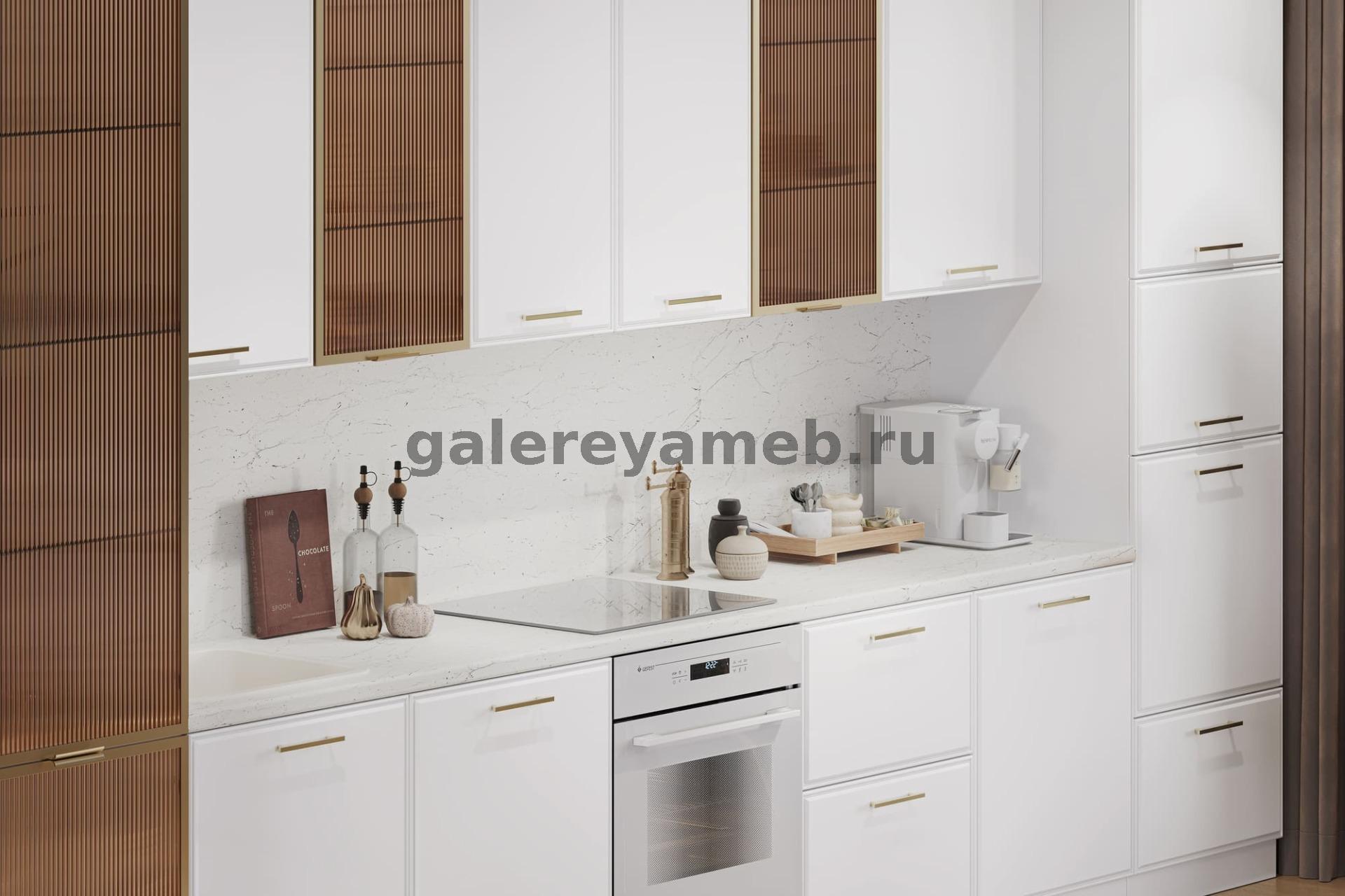 Кухня Виктория прямая 4,20 м Белый, Золото, Мрамор Марквина Белый матовый Арида