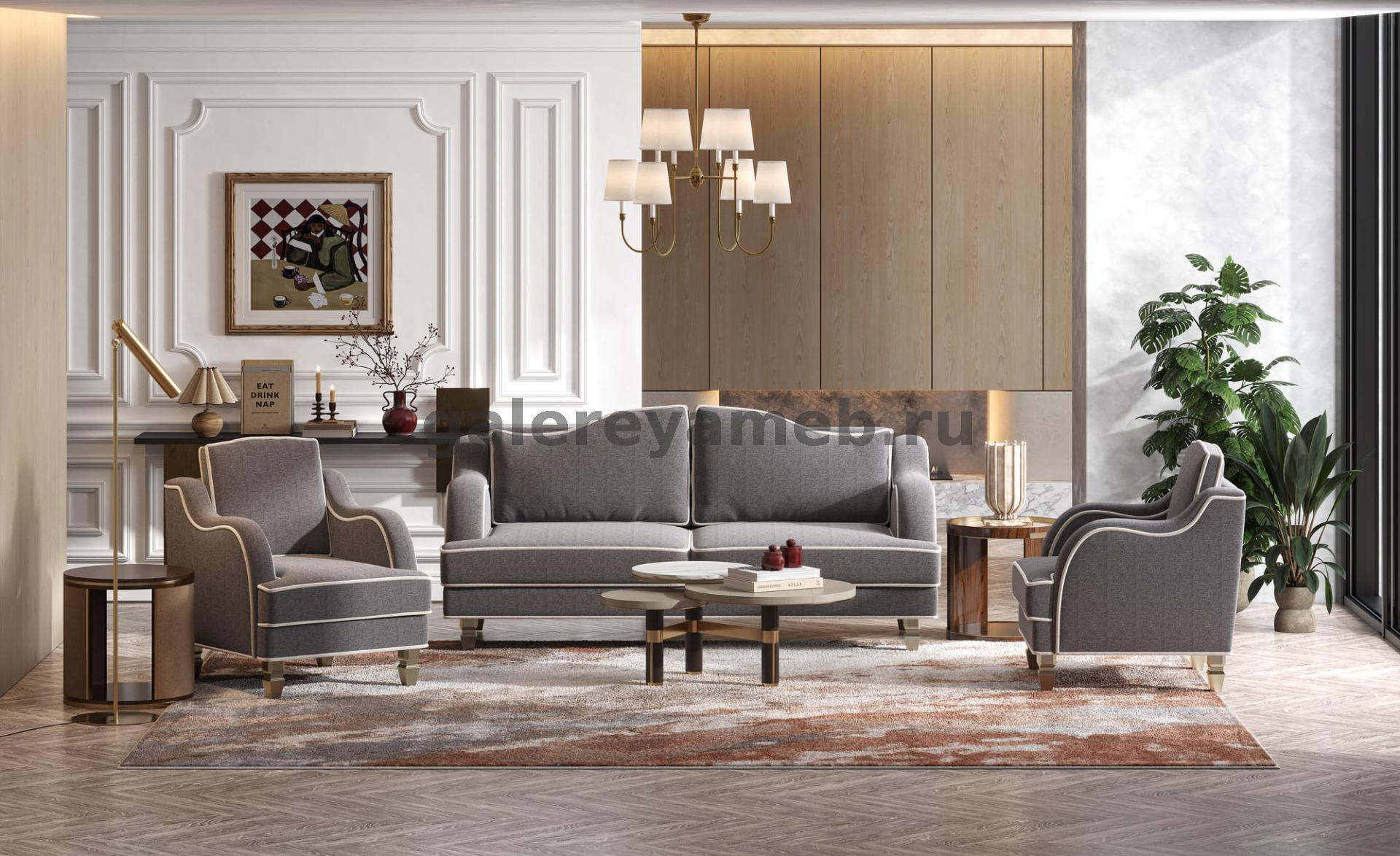 Мягкая мебель Прадо велюр серо-бежевый