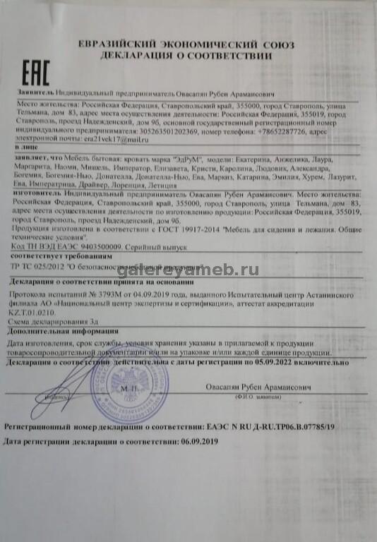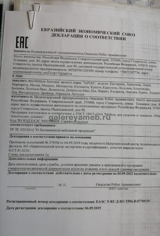 Сертификаты соответствия фабрика Эдрум