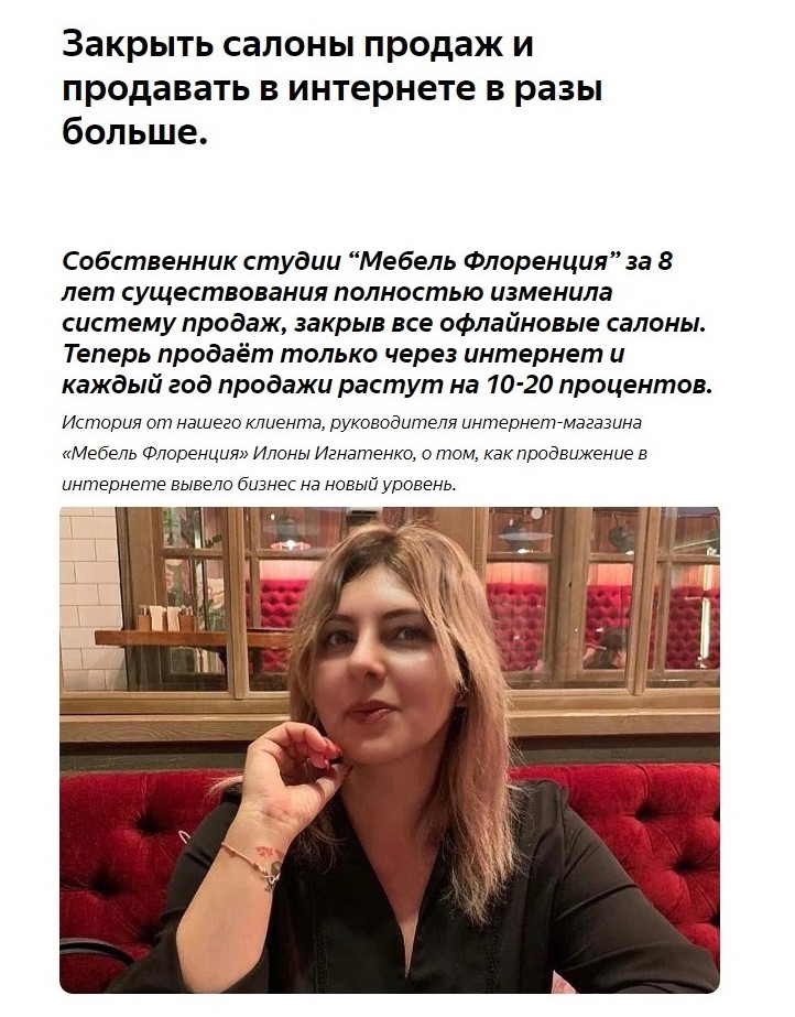 Денег на интернет продвижение тратим не много, особенно по сравнению с прошлыми затратами на офлайновые мебельные салоны.