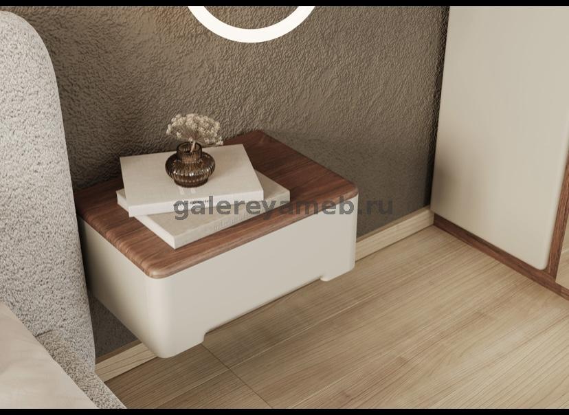 Спальня Мирелла кашемир, Дуб крафт табачный 3х дв. с зеркалом и подвесными тумбами, кровать 1,6м