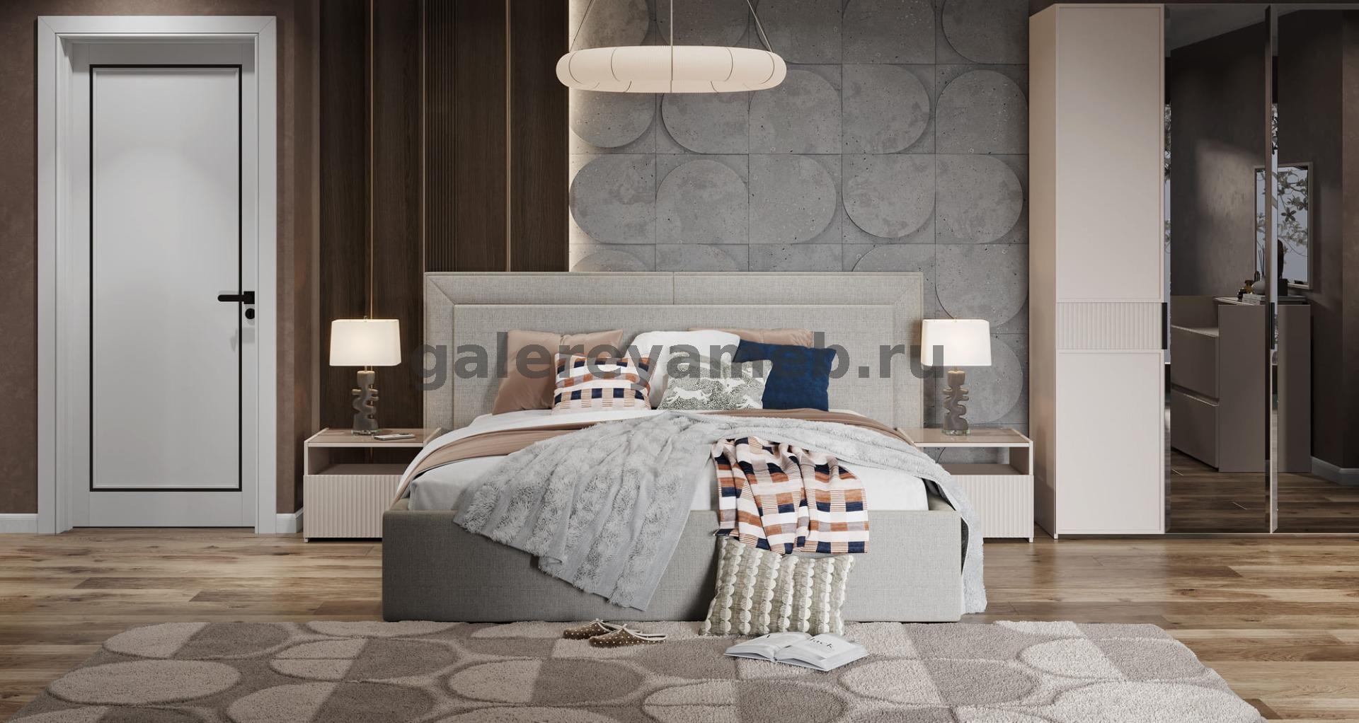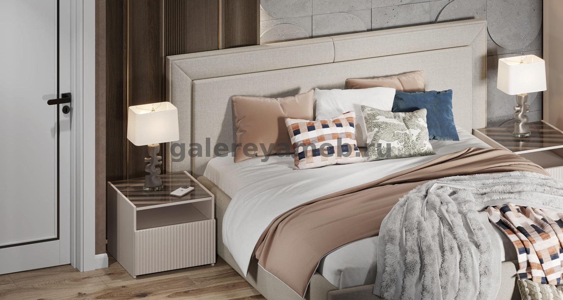 Спальня Верона бежевый (кровать 1,8; 2 тумбы; комод с зеркалом; шкаф 4 дверный) Арида