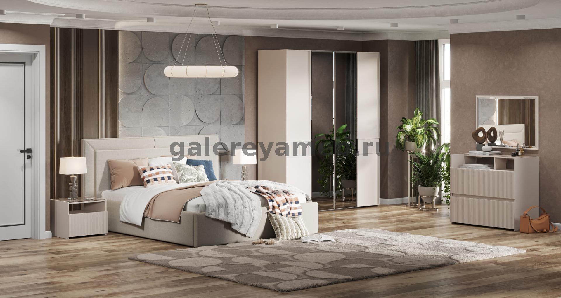 Спальня Афина бежевый (кровать 1,6; 2 тумбы; комод с зеркалом; шкаф 4 дверный) Арида