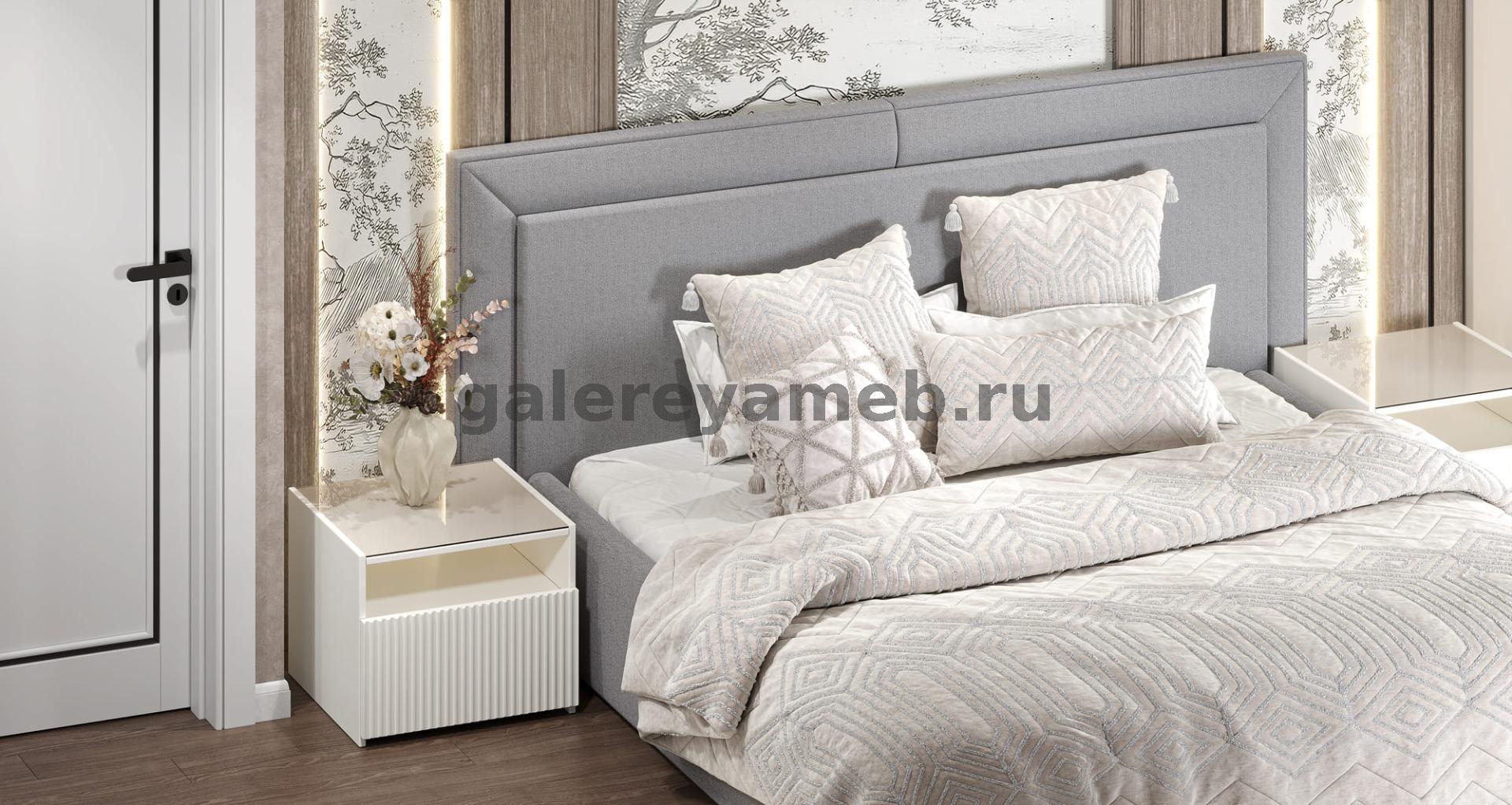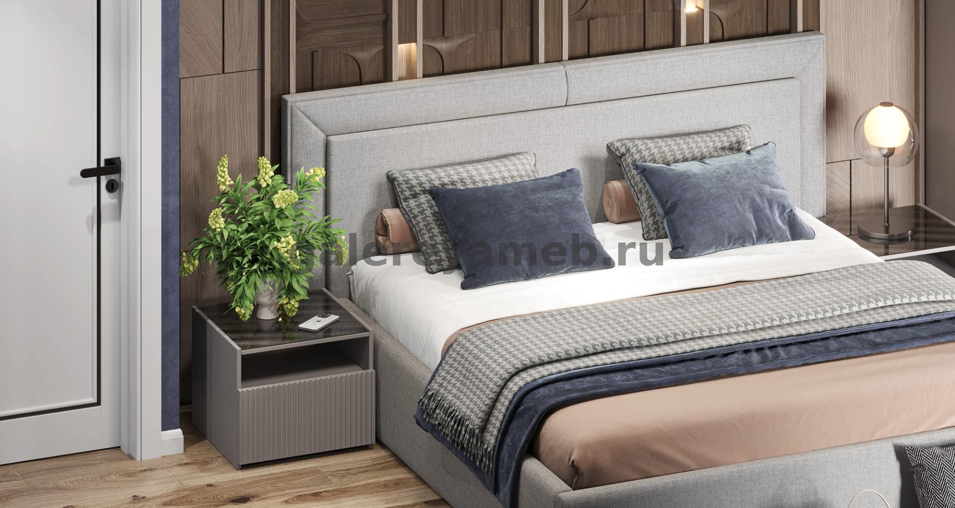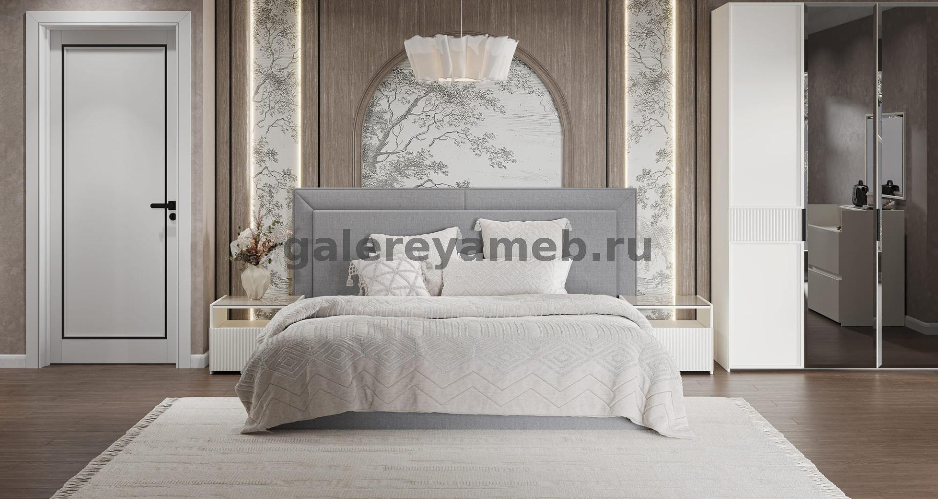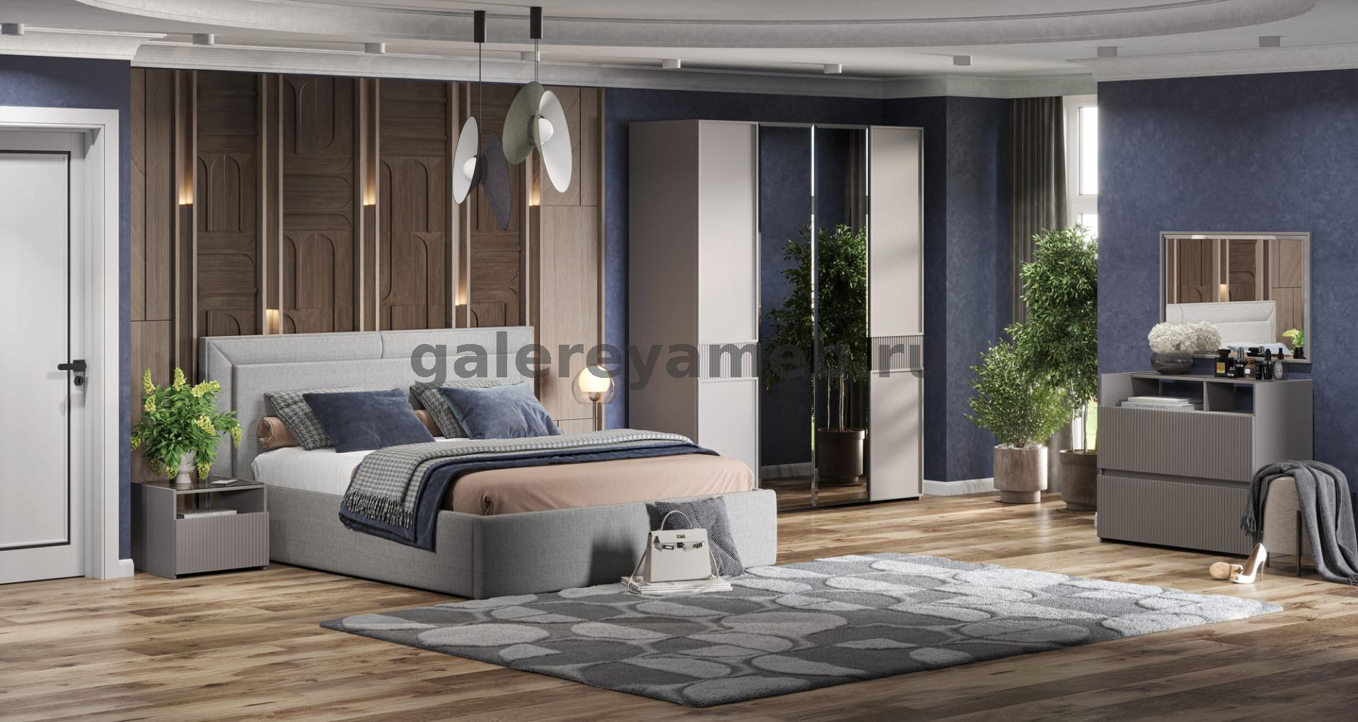 Спальня Афина серый (кровать 1,6; 2 тумбы; комод с зеркалом; шкаф 4 дверный) Арида