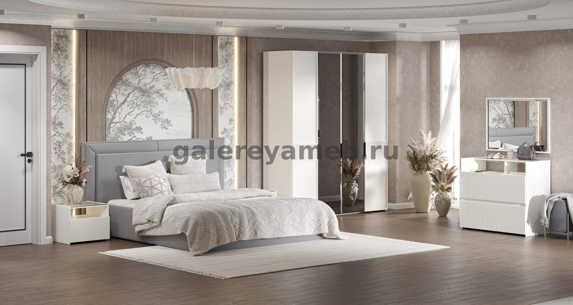 Спальня Афина белый (кровать 1,6; 2 тумбы; комод с зеркалом; шкаф 4 дверный) Арида