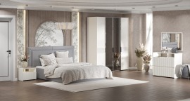 Спальня Афина 4х дв.белый, Твид светло-серый