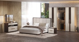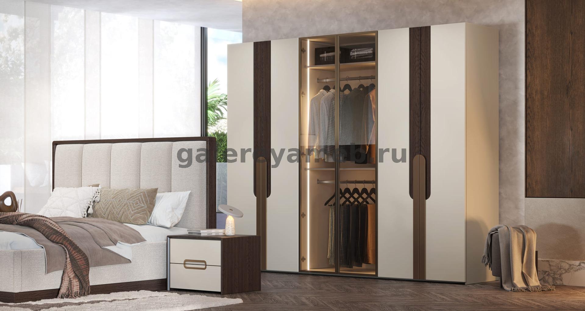 Спальня Верона бежевый (кровать 1,8; 2 тумбы; комод с зеркалом; шкаф 5 дверный) Арида
