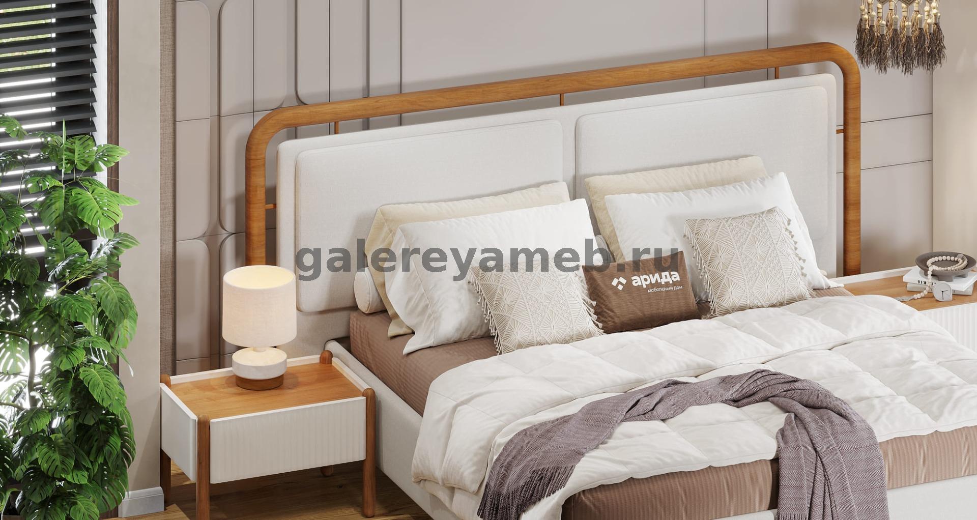 Кровать Мелани 1,6 велюр букле-бежевый, велюр-букле серый Арида