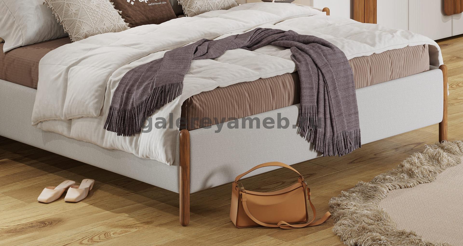 Кровать Мелани 1,6 велюр букле-бежевый, велюр-букле серый