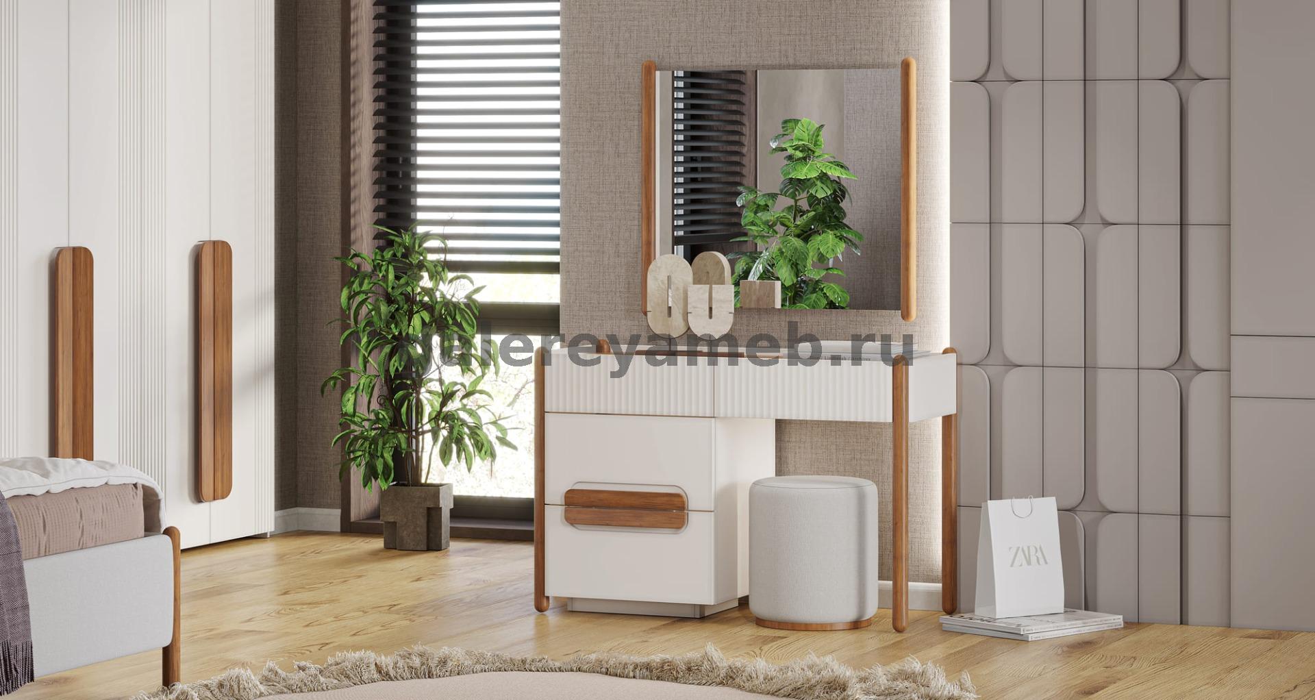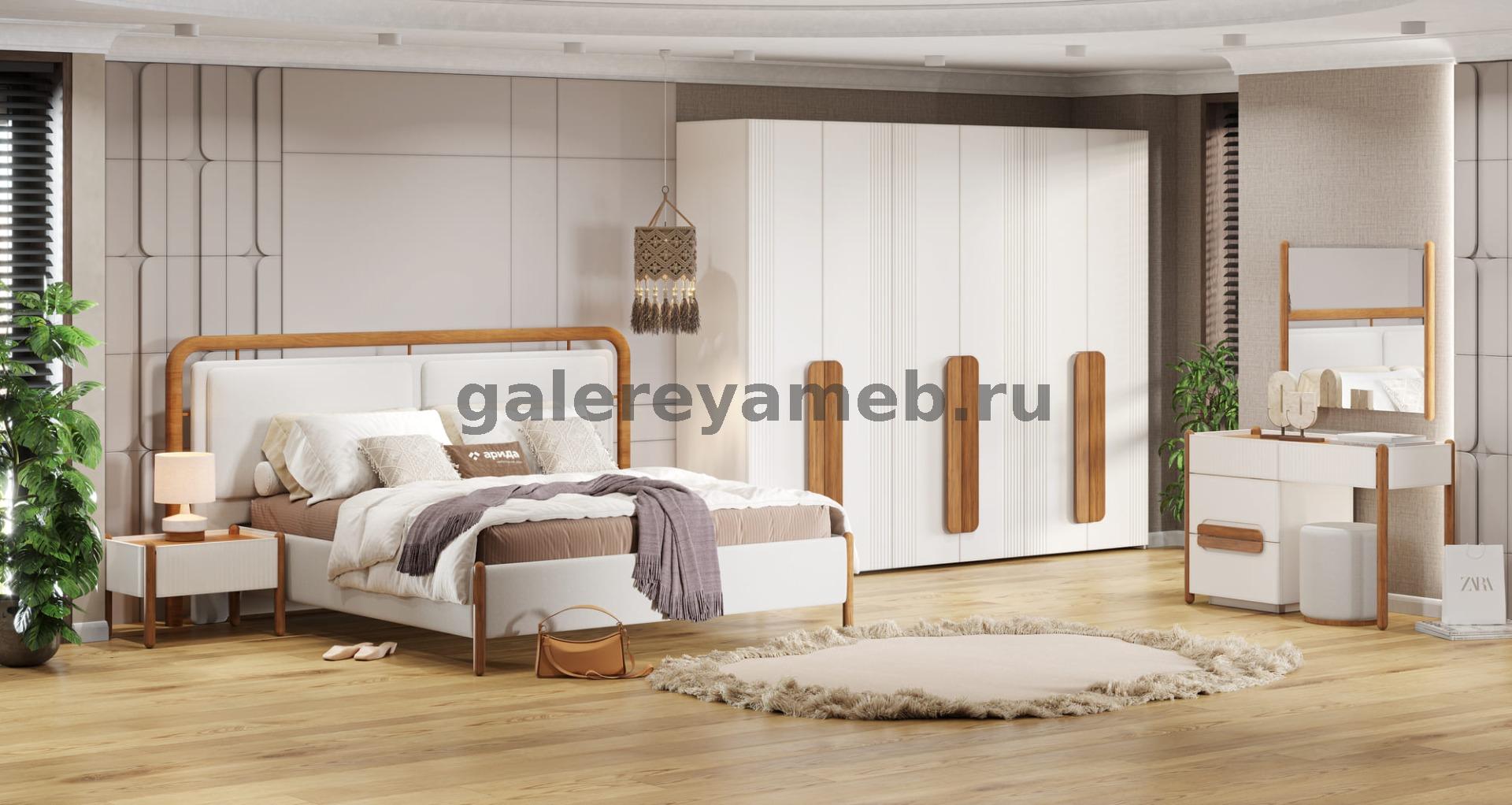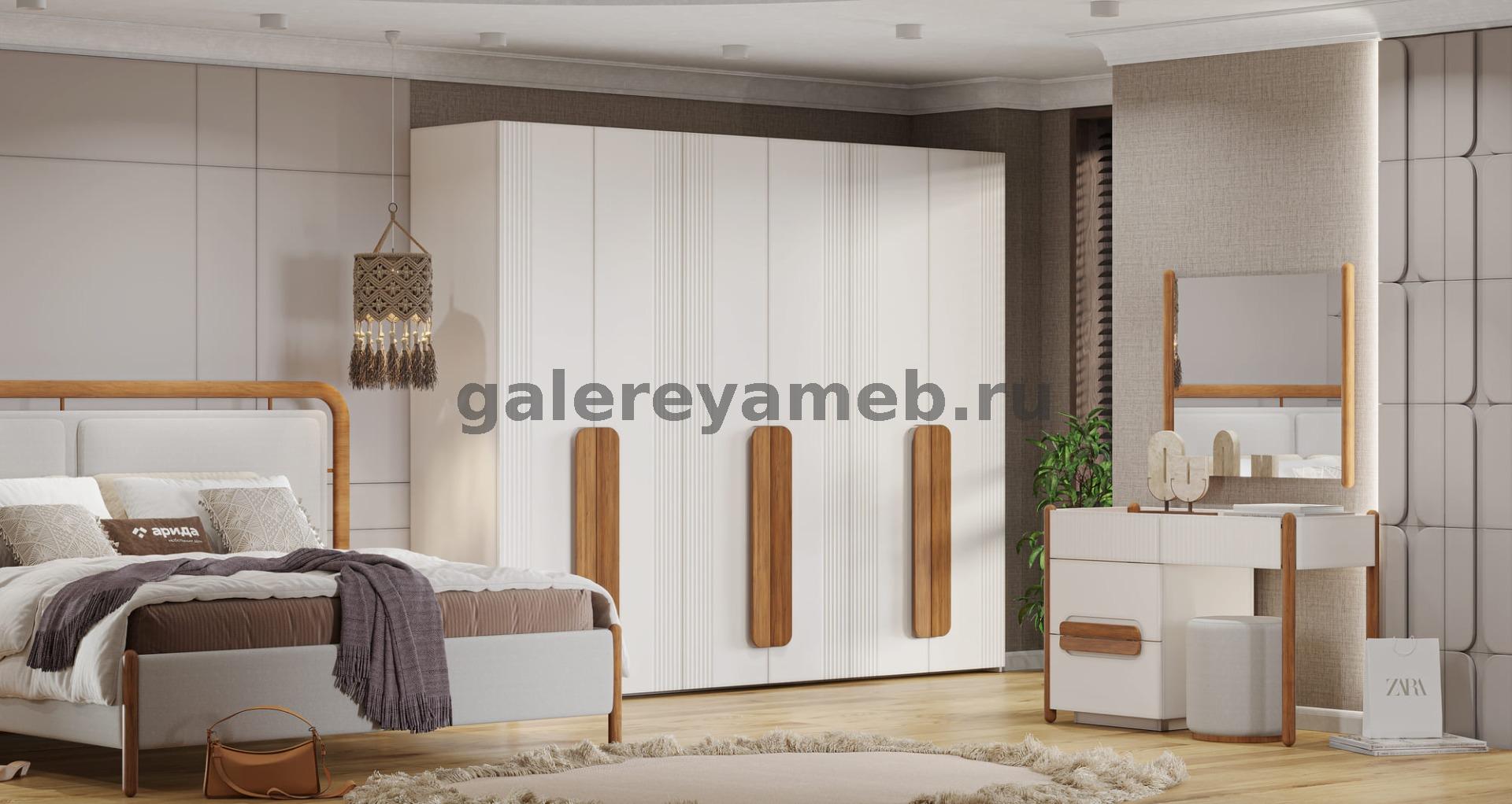 Спальня Линда (кровать 1,8, 2 тумбы, туалетный стол с зеркалом и пуфом, шкаф 6 дверный) Арида