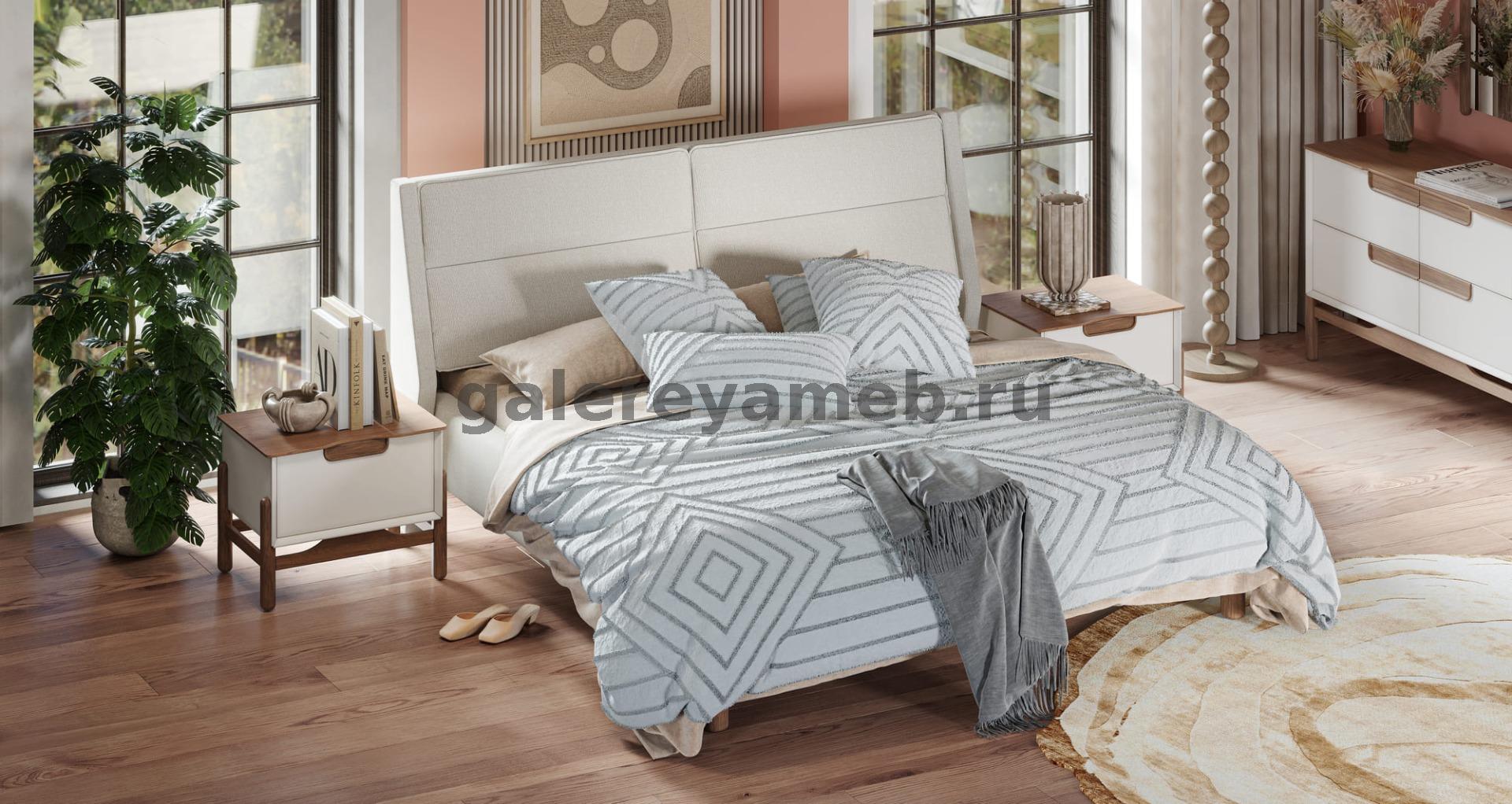 Спальня Мадрид бежевый (кровать 1,6; 2 тумбы; комод с зеркалом; шкаф 4 дверный) Арида