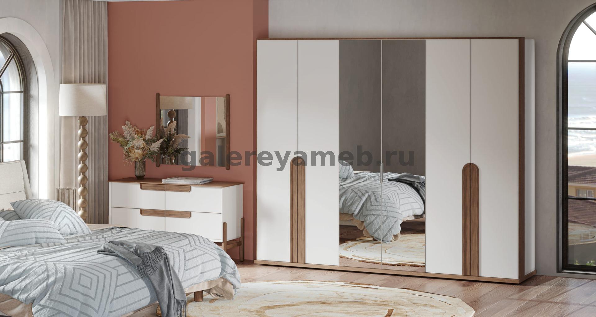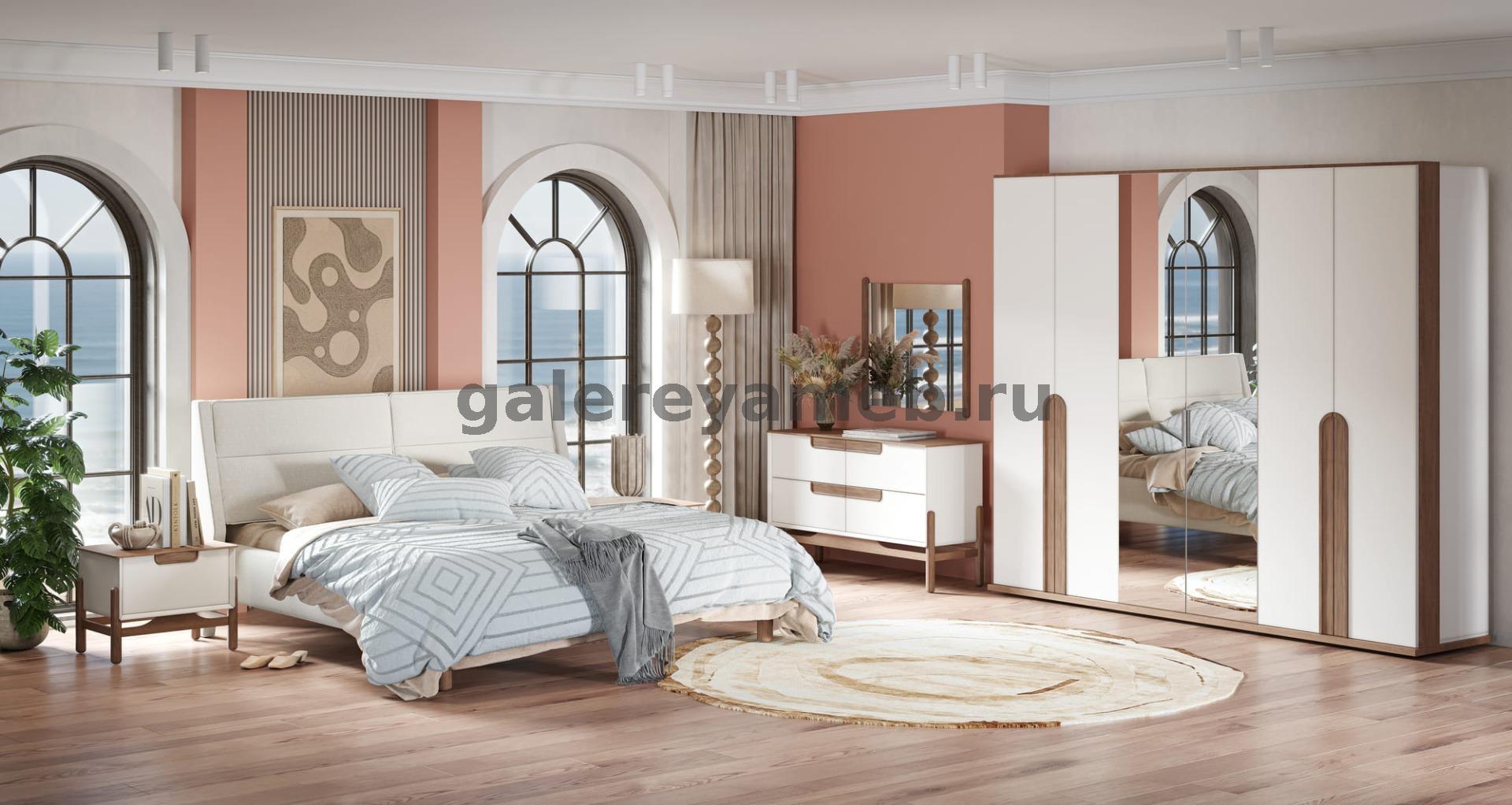 Спальня Линда (кровать 1,8, 2 тумбы, туалетный стол с зеркалом и пуфом, шкаф 6 дверный) Арида