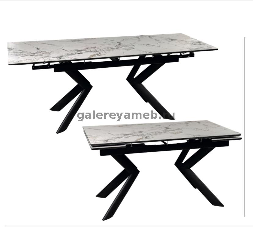 Стол МОНРЕАЛЬ 1400 х 800(2*300) черный, керамика глянец К-8, К-15 / черные опоры+доводчик